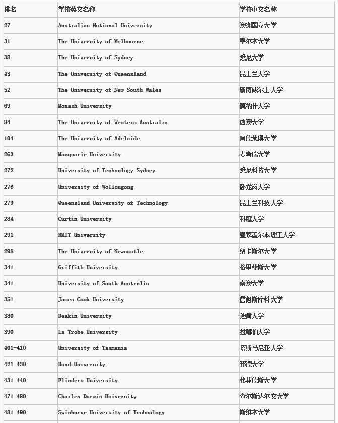 2014年度QS最新的大学排名已经出炉了。澳洲一共有39所大学,其中澳洲的八大共有7所进入到了全球前100,共25所大学进入到前500,31所进入到了前700。这也从另一方面证明了澳洲大学在全球的整体排位和教育水平。