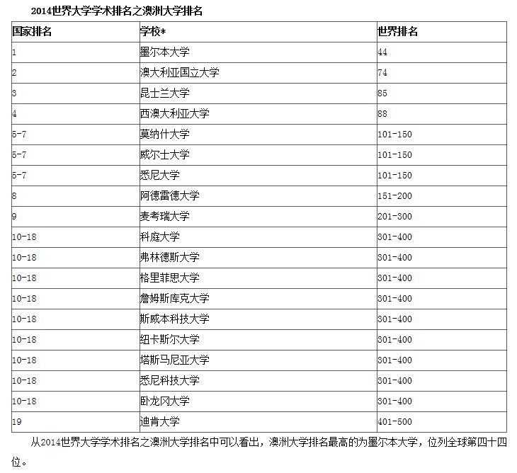 首页 > 世界大学排名 > 2014世界大学学术澳洲大学排名