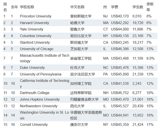首页 > 世界大学排名 > 2015USNEW美国大学排名变化不大