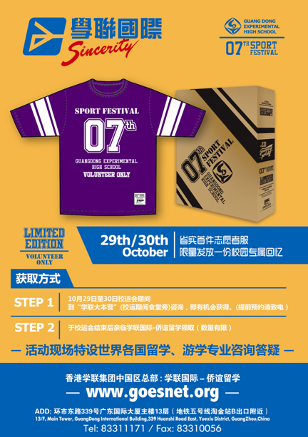 *备注:如果你是来自其它学校,也想参加这一盛事领取省实首件志愿者服装,亦可来访学联国际-侨谊留学。预约电话:83311171